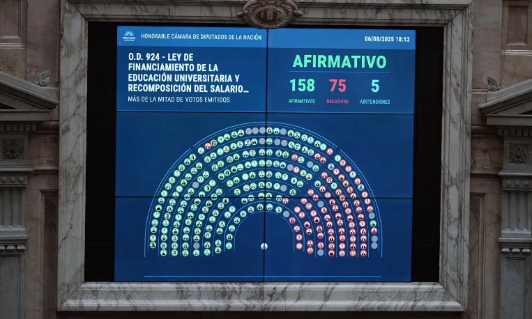 El proyecto de ley de financiamiento universitario obtuvo media sanción en la Cámara de Diputados por segundo año consecutivo. La iniciativa de la oposición obtuvo 158 votos a favor, 75 en contra y cinco abstenciones.